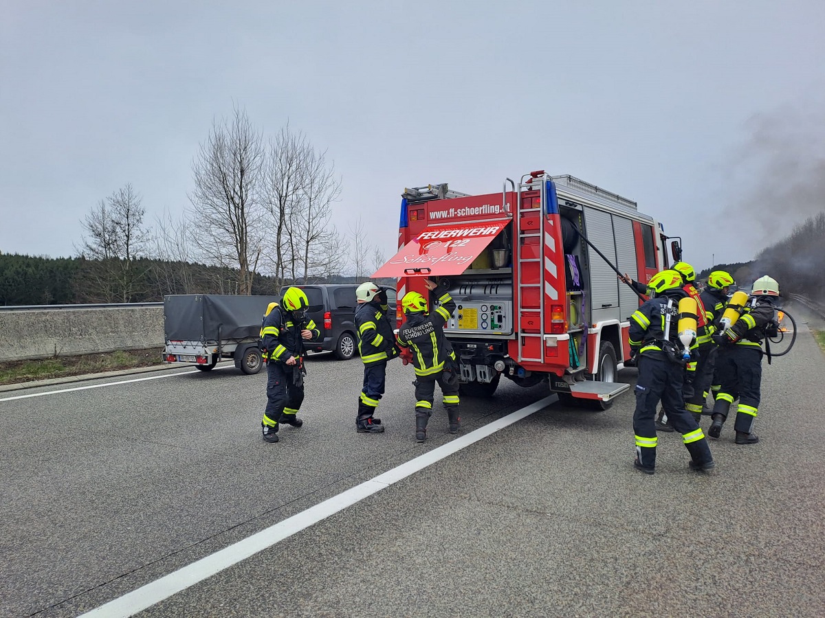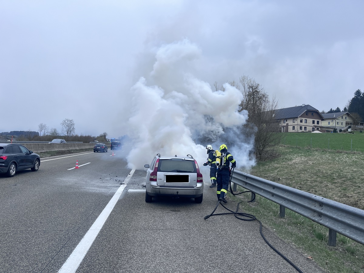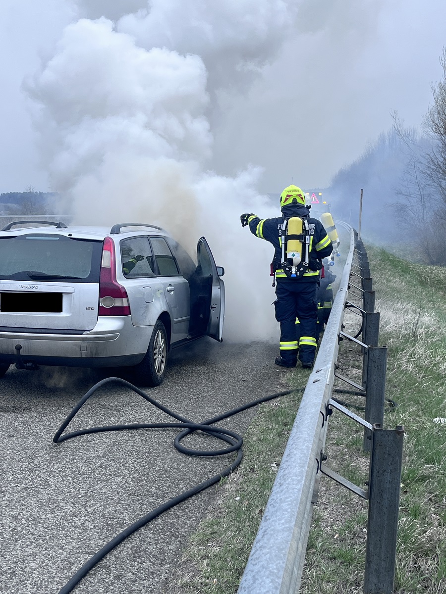 Umgehend rückte unsere Einsatzmannschaft zum Einsatzort aus. Bei Ankunft unseres TLF stand der vordere Teil des PKW´s bereits in Vollbrand. Umgehend wurde von unserem Atemschutztrupp ein Löschangriff gestartet, welcher auch rasch Erfolg zeigt. Nach kurzer Zeit war das Auto dann vollständig gelöscht. Anschließend wurde eine Nachkontrolle mittels Wärmebildkamera durchgeführt.