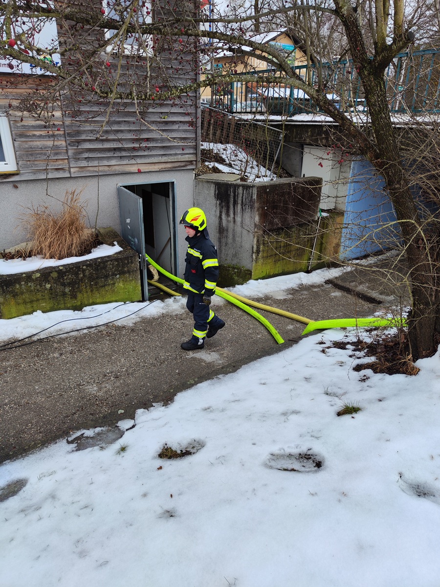 Unsere Einsatzmannschaft setzte zwei leistungsstarke Tauchpumpen ein um die Wassermaßen aus dem Keller in die Ager zu pumpen. Nach zirka einer Stunde war der Einsatz für uns abgeschlossen.