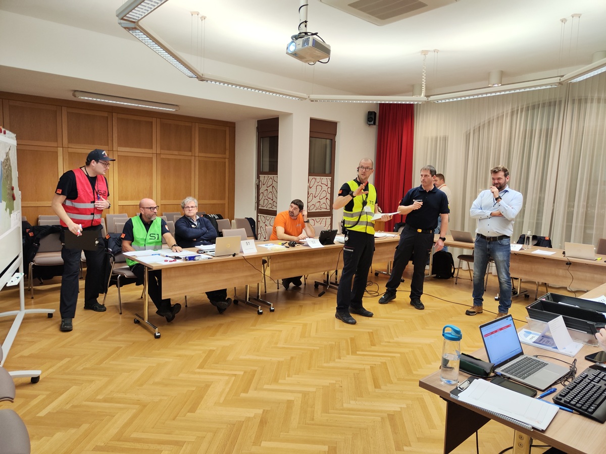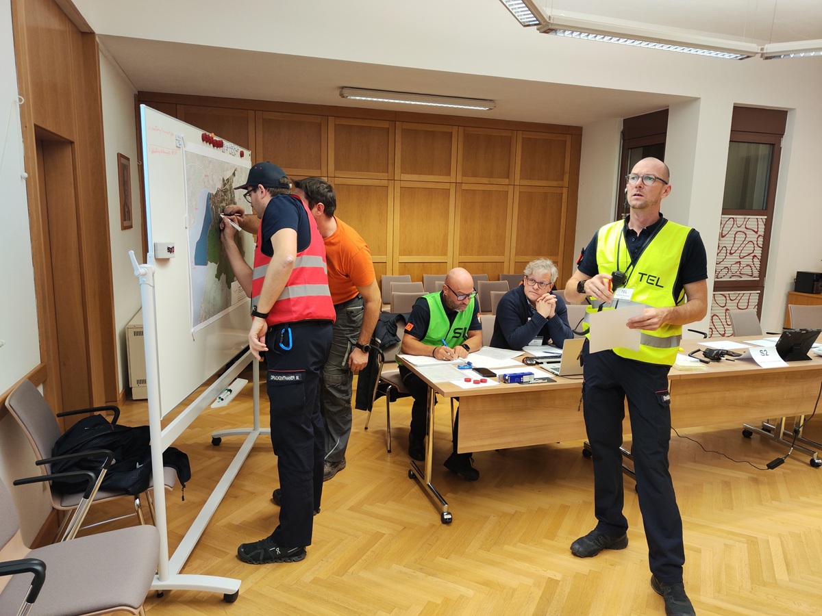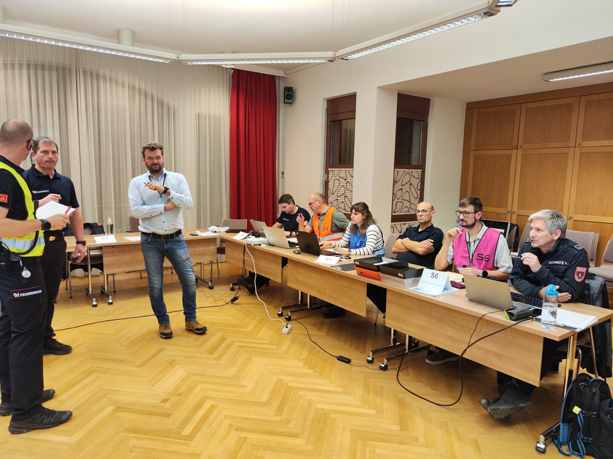 Nach einer Aufwärmphase wurde die Geschwindigkeit der Einsatzmeldungen schrittweise erhöht. Somit wurde die Stabsarbeit immer weiter ausgebaut und einem Stresstest unterzogen. Damit die Mitglieder des Krisenstabes einen realistischen Ablauf üben konnten, stand im Feuerwehrhaus Schörfling einige Kameraden bereit, die als „einzelne Fahrzeugkommandanten“ auftraten. Diese Fahrzeugkommandanten bekamen direkt vom Stab die Einsatzaufträge übermittelt.