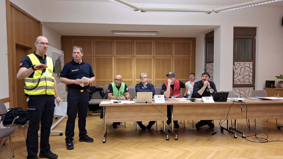 Nach drei Stunden wurde die Krisenübung erfolgreich beendet, dabei wurden ca. 30 Einsätze bewältigt. Bei der anschließenden Nachbesprechung konnten einige Punkte zur Verbesserung für die Zukunft mitgenommen werden.