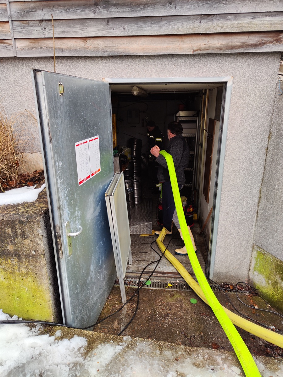 Unsere Einsatzmannschaft setzte zwei leistungsstarke Tauchpumpen ein um die Wassermaßen aus dem Keller in die Ager zu pumpen. Nach zirka einer Stunde war der Einsatz für uns abgeschlossen.