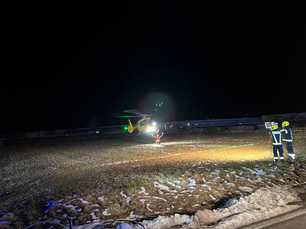 Aufgrund des Verletzungsbildes der Lenkerin wurde von der Rettung ein Notarzthubschrauber angefordert. Für die sichere Landung richteten die eingesetzten Feuerwehren im Nahbereich einen Landeplatz ein und übernahmen im Anschluss die Einweisung des Hubschraubers.