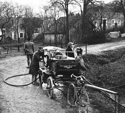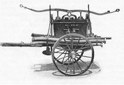 Eine Abprotzspritze System Metz wie auf dieser Abbildung tat ab 07.10.1872 als erstes Löschgerät Dienst in der Communal Feuerwehr Schörfling.